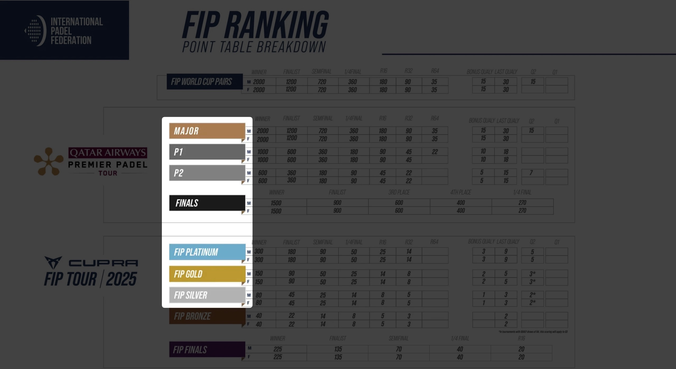 To guarantee the highest data quality and consistency, Padel API currently focuses on the following tournament levels.